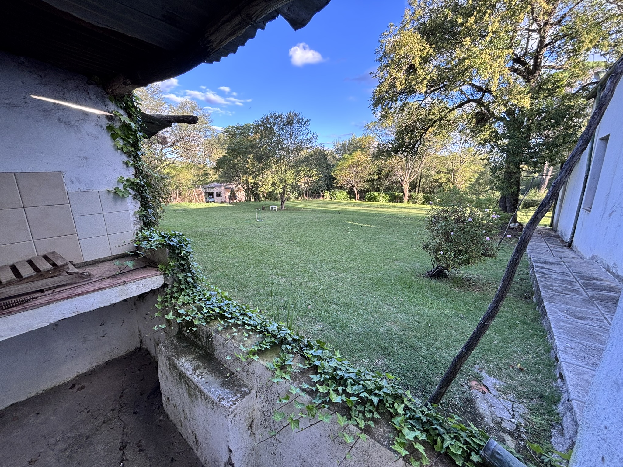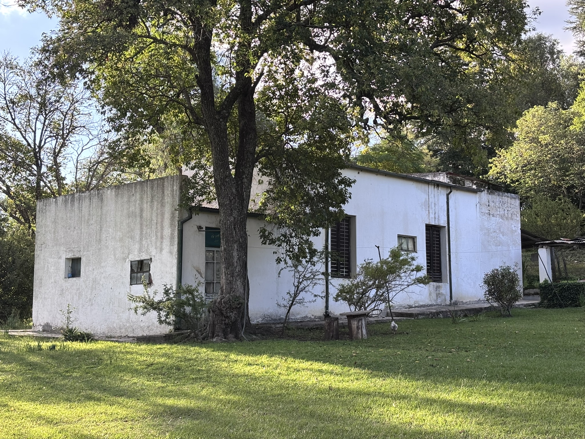 Cuenta con una casa de los años 40, con una dependencia y corrales para animales. Tiene una vegetación autóctona con arroyo y vertientes.