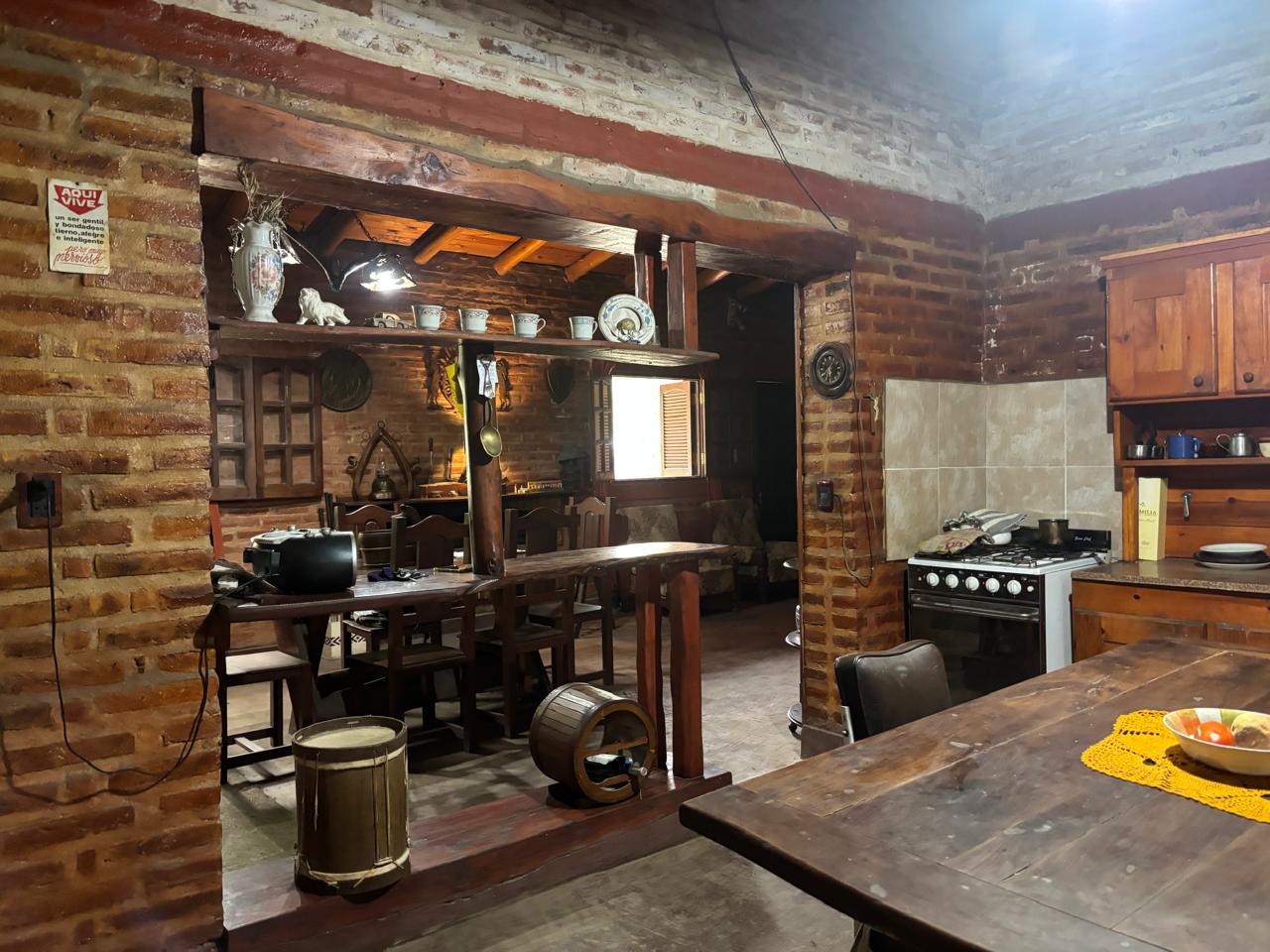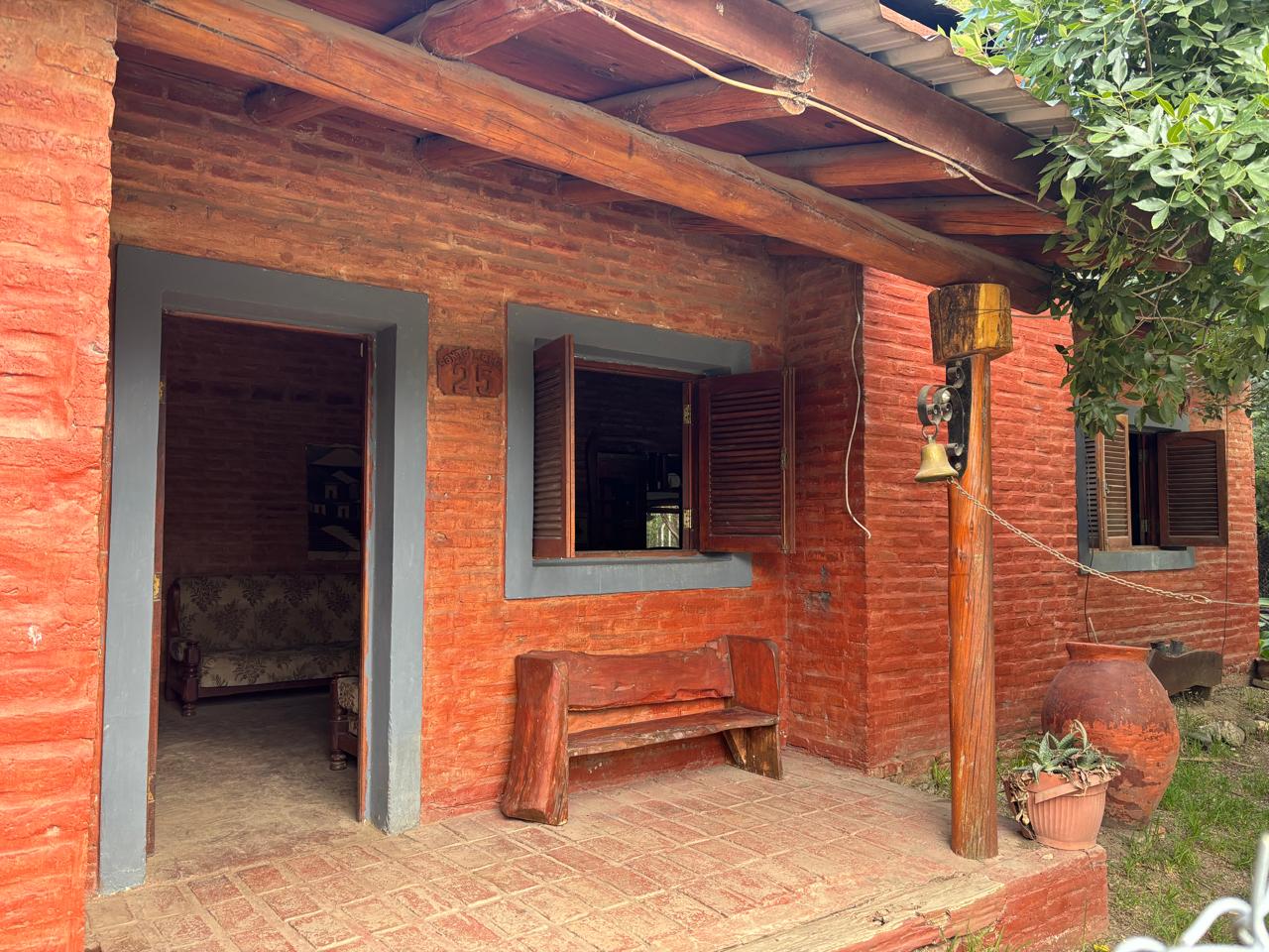 Hermosa casa rústica de estilo campestre, en calle Santa María, Barrio Parque El Aromo, Anisacate, que tiene una distribución inteligente (Ideal para vivienda familiar ,o como Casa + Depto independiente p renta).La casa principal tiene un gran dormitorio, baño. cocina, comedor amplio c living y galería exterior. Sector que puede independizarse: 2 dormitorios, segundo baño, cocina. Detalles : aberturas de algarrobo macizo con vidrio repartido, pisos rústicos de ladrillos, estética auténtica de casa de campo, con entorno Verde, aire puro y privacidad. Sup terreno 989 m2, terreno nivelado, armonioso y con árboles consolidados. Servicios: Luz (cooperativa Anisacate); agua de pozo; agua corriente disponible para conexión; gas envasado (el gas natural en proceso de llegada en la zona), Se encuentra muy próxima a Ruta 5, por lo cual es de fácil acceso a todos los medios de transporte. Escritura inmediata.