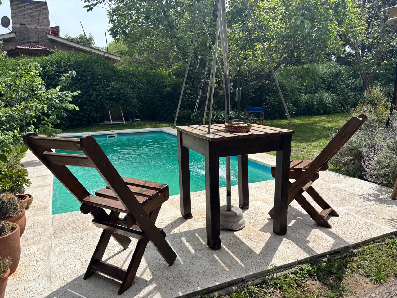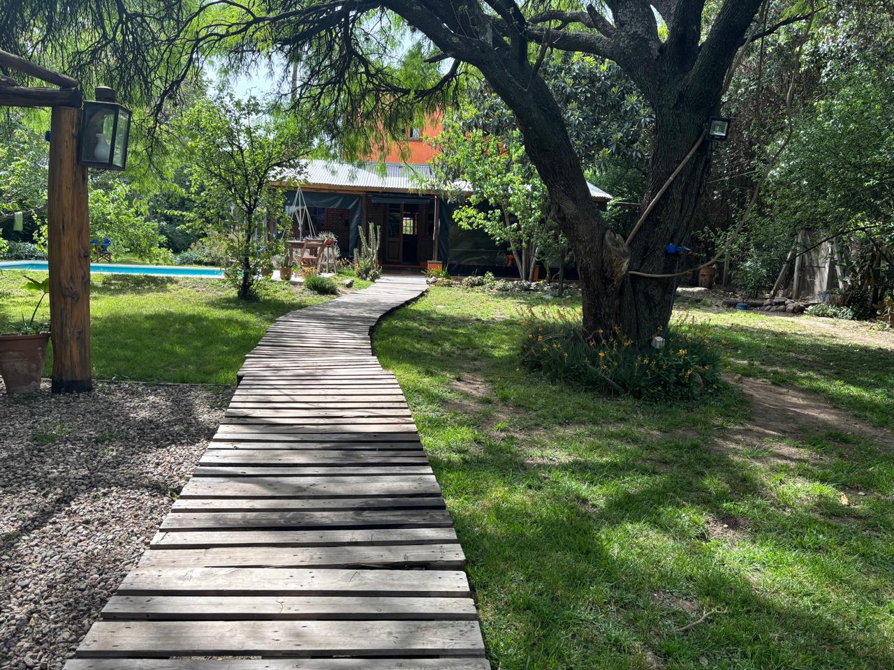 También tiene piscina con todos los equipamientos con solarium y hermosos espacios de jardín sombreados y relajantes. Posee detalles de calidad y gran sentido de diseño. La zona tiene agua corriente , energía eléctrica, en corto plazo llegará el gas natural, y está a dos cuadras de la ruta Provincial 5. Escritura inmediata